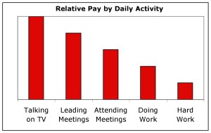 Thinking about how to present the problem I realized that I was not going to come up with better words than Rowe pronounced in rich baritone.  The problem is that your pay is directly related to how little actual work you do during the course of your day.  So I made up a fake chart that probably says more than any real data ever would.