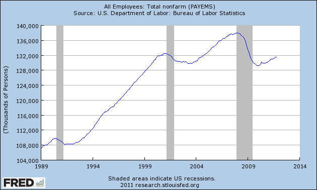 It is good to see a steady increase in jobs, but since it’s unlikely (I suspect) the new jobs are of equal pay/benefits to the ones lost, we may not be gaining ground as much as we we should…or could.