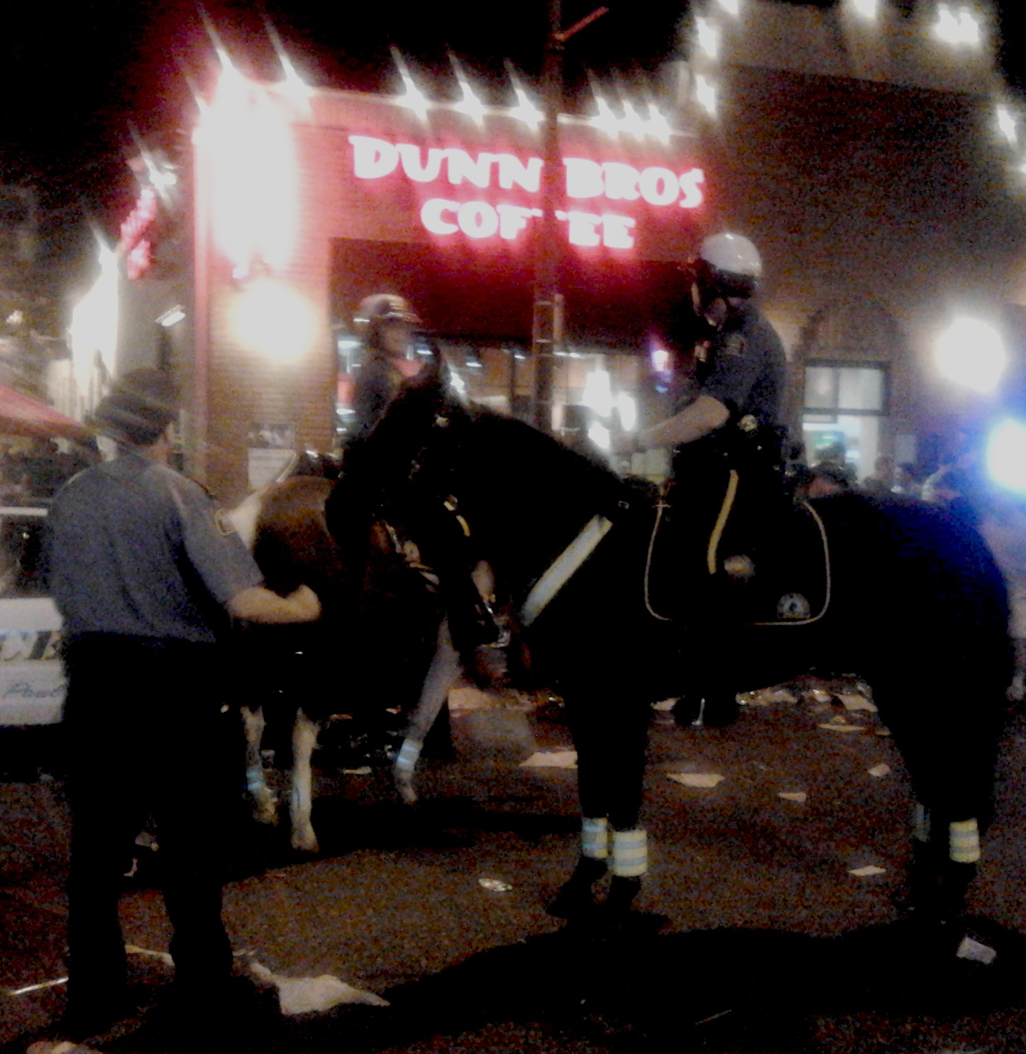 The contrast between this spontaneous event and the tense Republican Convention of 2008 could not be more stark.  I have never been more proud of our police.  They kept order without insisting on command, they kept peace with a smile.  What could have been a riot was turned into the biggest party we might ever throw, an instant Mardi Gras, with very few medical emergencies.  West Seventh was re-opened around 11PM when the crowds thinned.