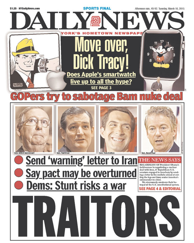 DailyNews Published 10 March 2015 at 652 × 815 in Grandstanding, not Governing ← Previous It’s a bit much to call it treason, but it was dumb. And this is a paper that is against negotiating with Iran.
