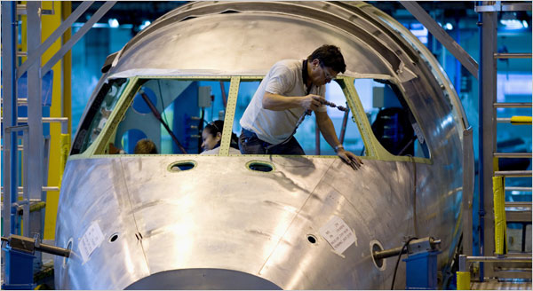 Workers building an Embraer plane in Brasil.  Welcome to the developed world!