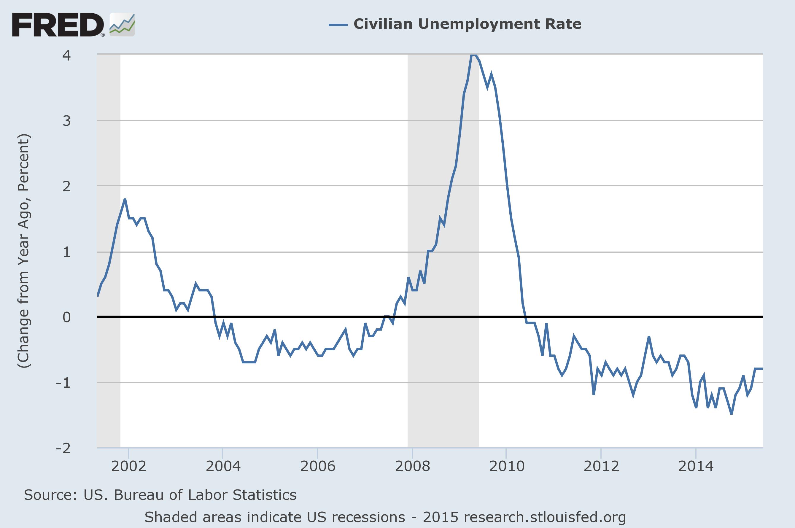 We’ve been gaining jobs at a rate of about 2.4% where the working population is growing at a rate of 0.5%. The net difference is 1.9%, which is about what you can expect the unemployment rate to fall in the same period.