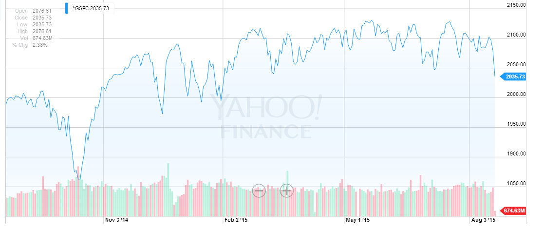 The stock market took a beating today, with the S&P 500 off 2.1%. This came for a lot of reasons but mostly because of a global selloff sparked largely by the ongoing meltdown in China. The question on everyone’s mind has to be, “How bad will it get?”