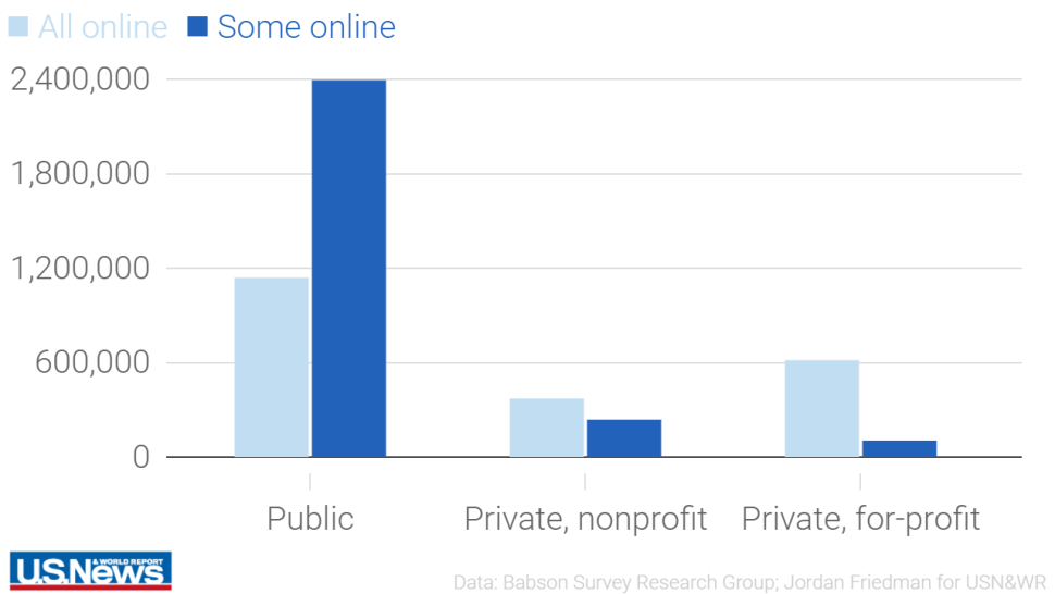 graph Published 6 September 2016 at 970 × 546 in Education at the Speed of Profit ← Previous Most online education is run by traditional public universities. Graph from US News & World Report.
