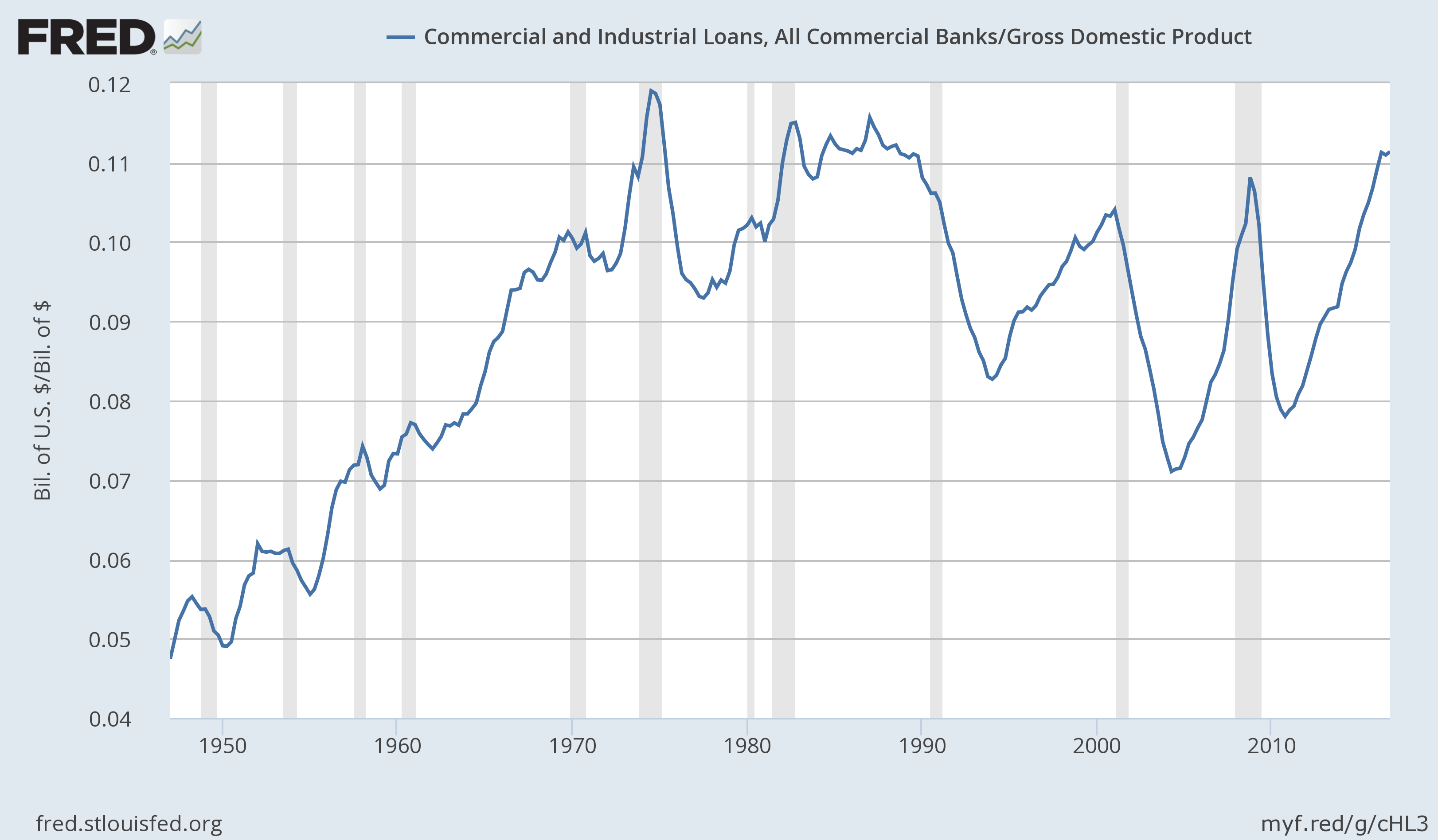 fredgraph-3 Published 15 February 2017 at 3244 × 1896 in Firm Hand ← Previous Commercial Lending, as a Share of the Economy. Data from the St Louis Federal Reserve.