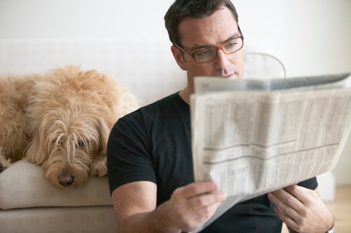 Man reading newspaper Published 19 February 2017 at 1280 × 852 in Why We Write The dog probably has the right idea.