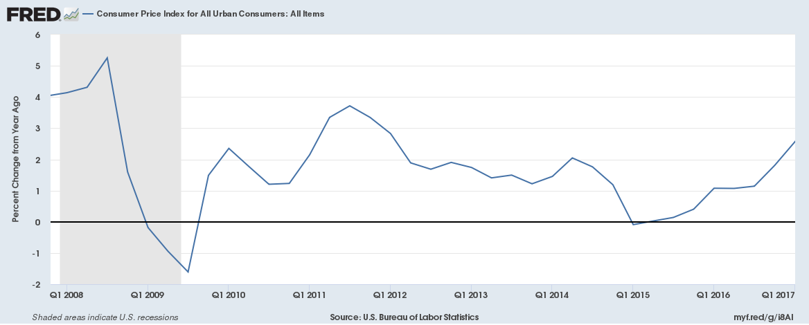 The consumer price index (CPI) since 2010. It’s firmly crossed the target of 2% and is expected to only increase from here.
