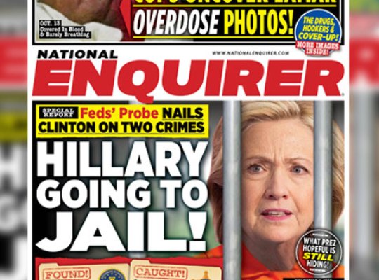 What we also know is that during the campaign, this close relationship became much hotter. Stories about Ted Cruz and later Hillary Clinton literally filled the cover, none of them remotely credible. We can trace the “Lock her up!” chant, for example, directly to a National Enquirer cover in November 2015. It appears to be the first reference to this as a prospect, and of course has as much basis in reality as Bat Boy.